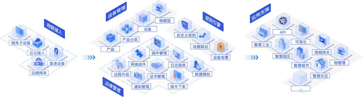 设备管理,多协议适配,数据收集,规则引擎,快速构建物联网相关业务系统